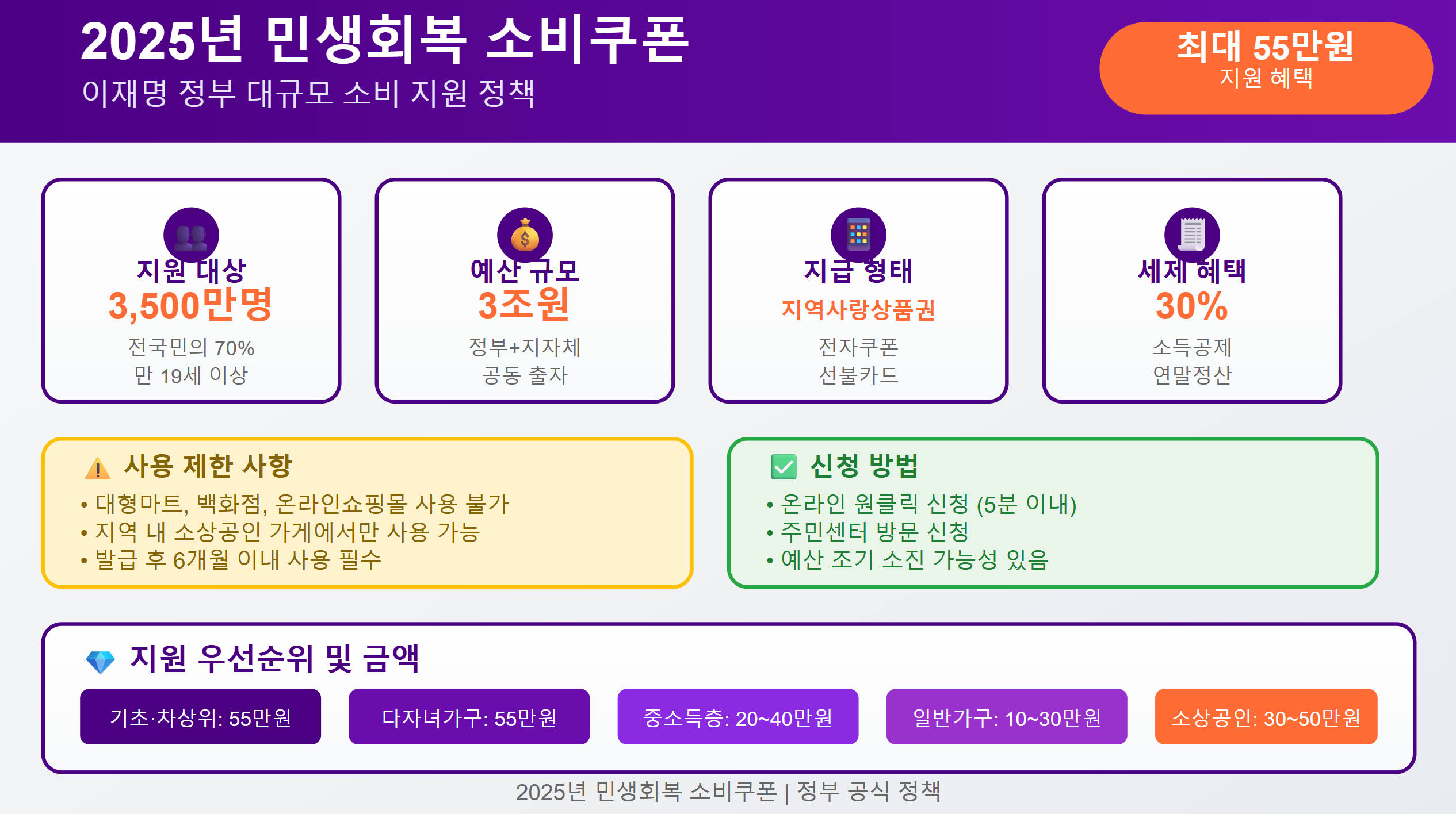 - 민생회복소비쿠폰 #2025년소비쿠폰 #지역사랑상품권 #55만원지원 #소상공인지원 #지역경제활성화 #세제혜택 #전자쿠폰 #모바일상품권 #전통시장 #소득공제 #이재명정부 #소비지원정책 #3조원예산